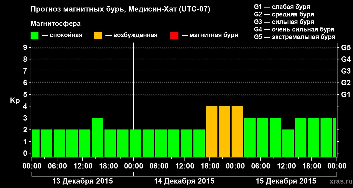 Прогноз магнитных бурь в Медисин-Хате — 13 декабря 2015 года