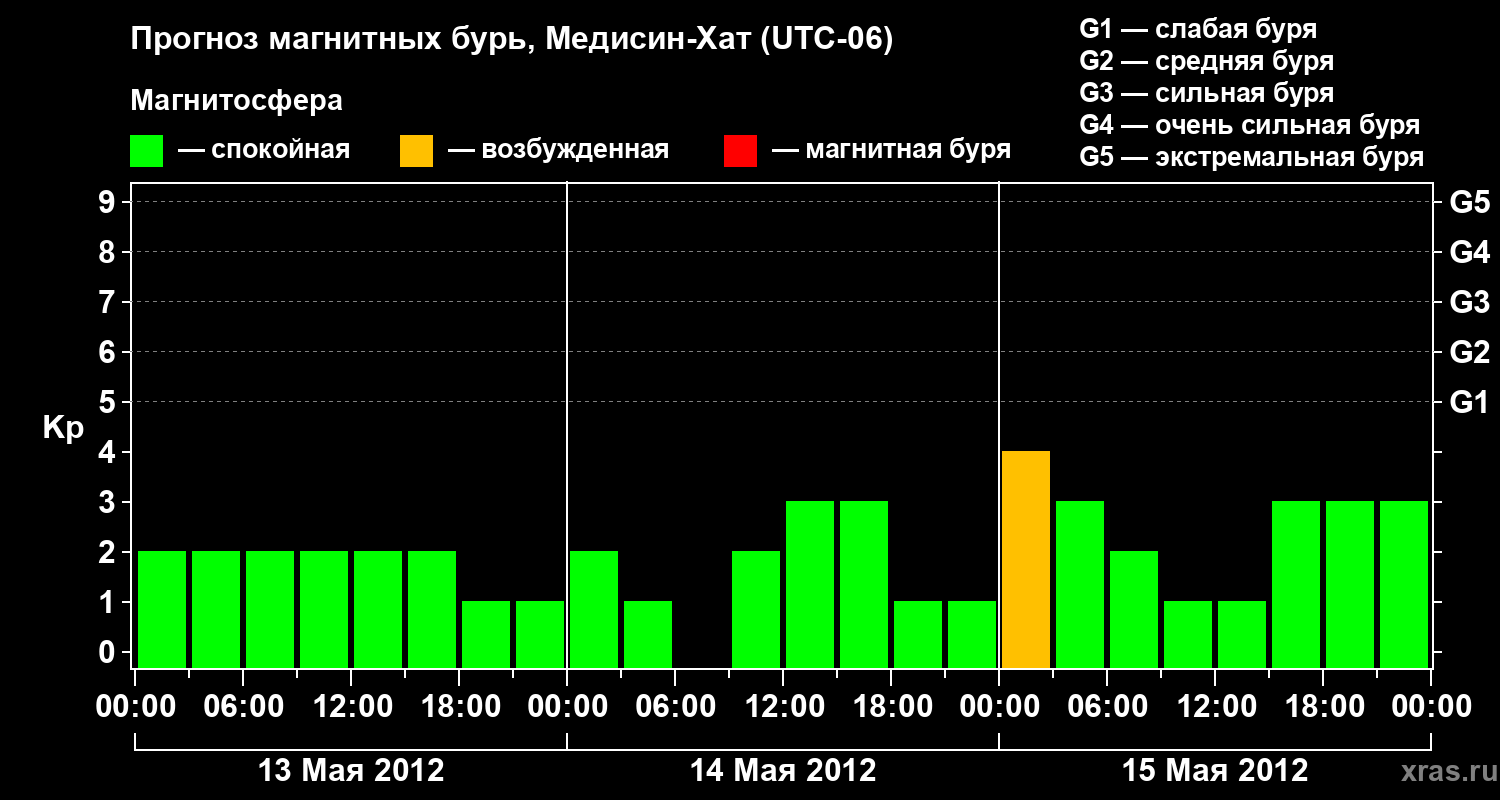 Прогноз магнитных бурь в Медисин-Хате — 13 мая 2012 года