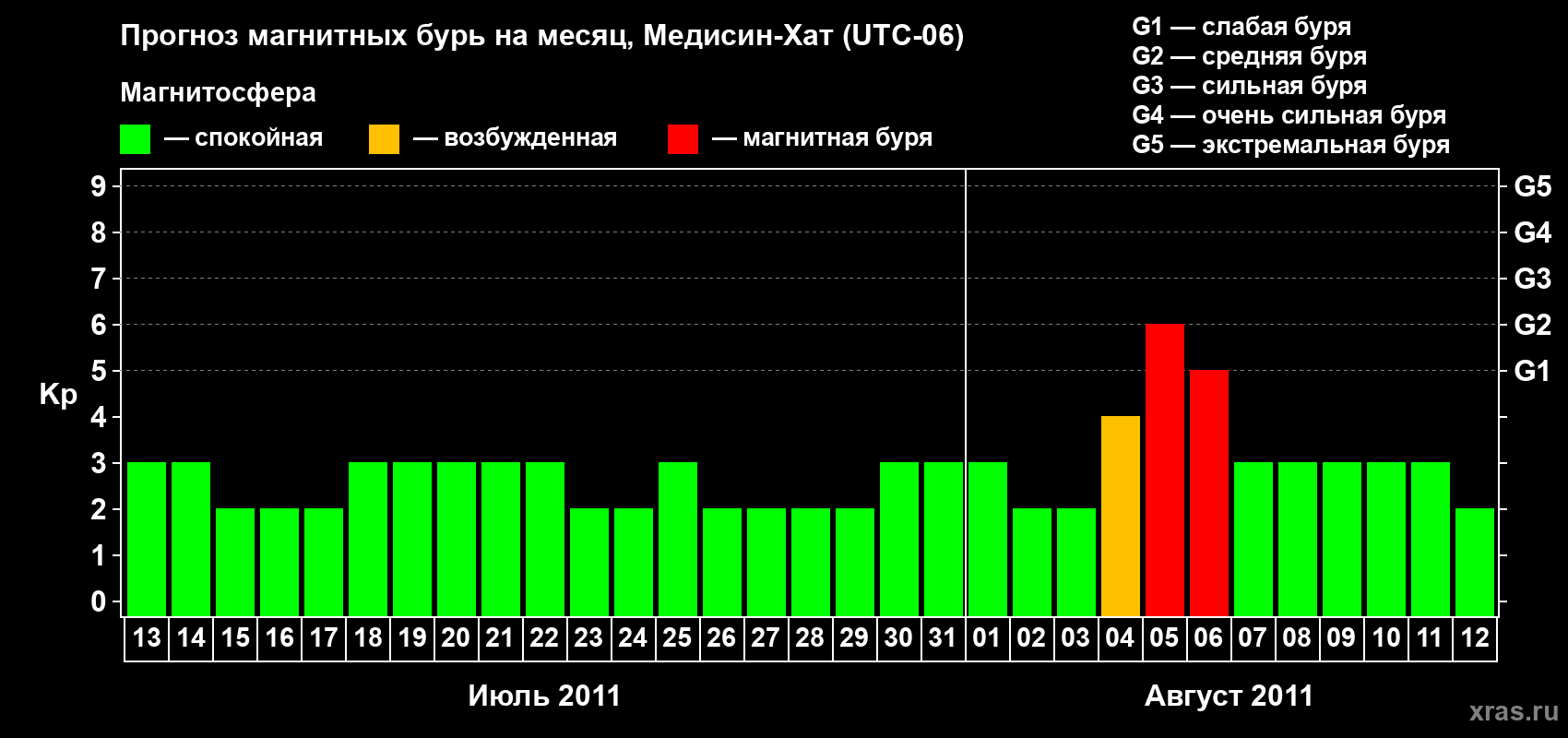 Прогноз магнитных бурь в Медисин-Хате — 13 июля 2011 года