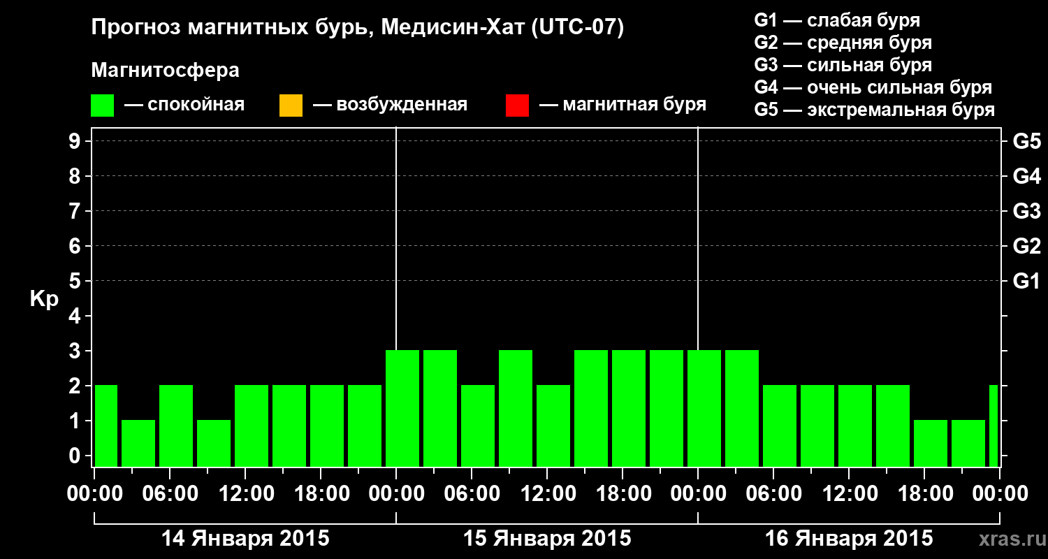 Прогноз магнитных бурь в Медисин-Хате на 14 января 2015 года