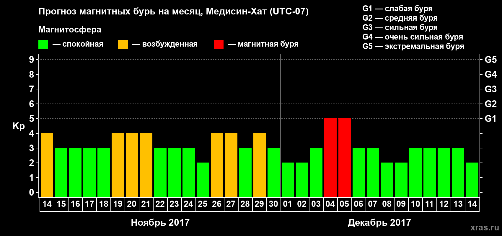 Прогноз магнитных бурь в Медисин-Хате — 14 ноября 2017 года