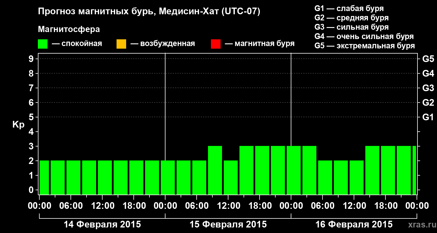 Прогноз магнитных бурь в Медисин-Хате — 14 февраля 2015 года