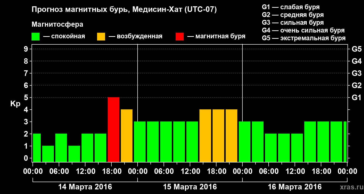 Прогноз магнитных бурь в Медисин-Хате — 14 марта 2016 года