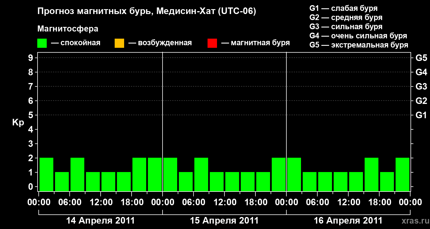 Прогноз магнитных бурь в Медисин-Хате — 14 апреля 2011 года