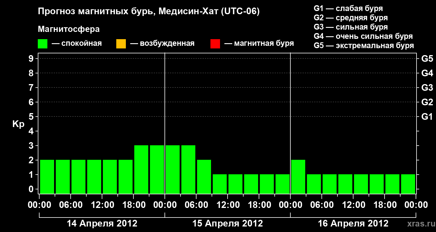Прогноз магнитных бурь в Медисин-Хате — 14 апреля 2012 года