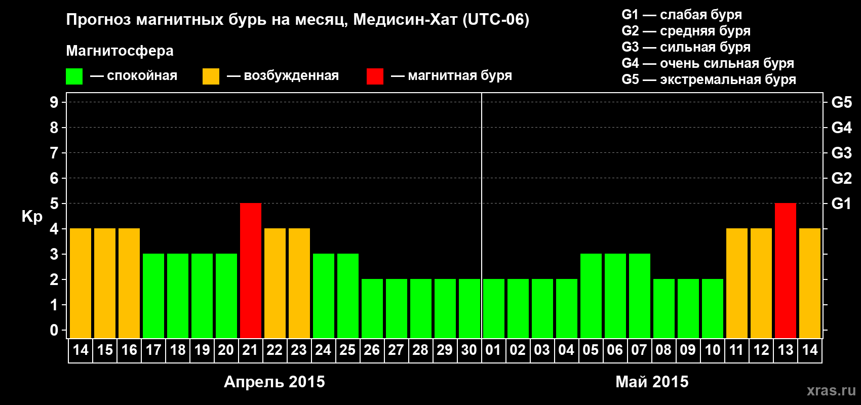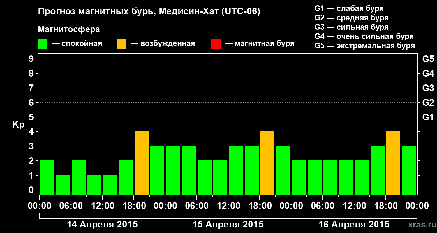 Прогноз магнитных бурь в Медисин-Хате — 14 апреля 2015 года