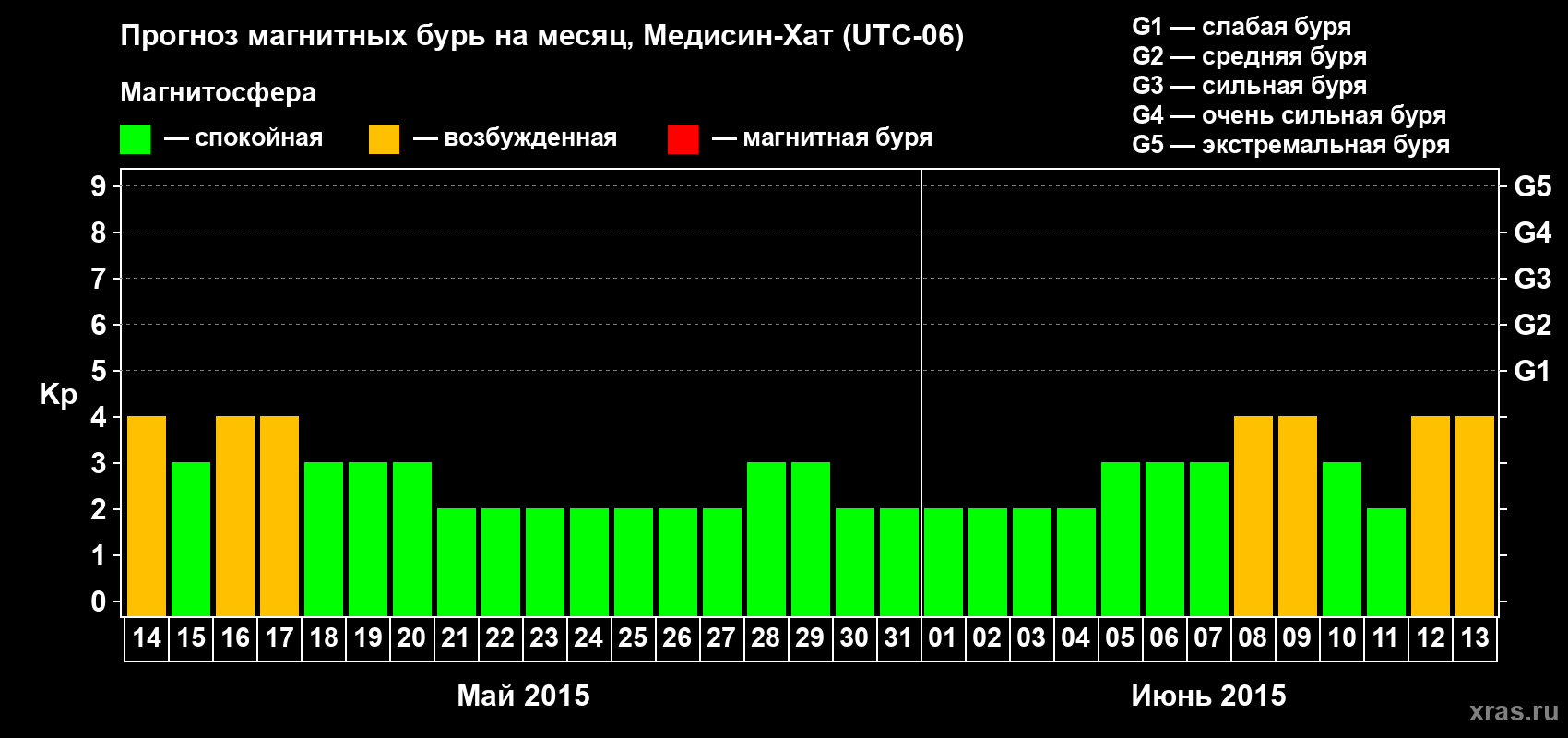 Прогноз магнитных бурь в Медисин-Хате — 14 мая 2015 года