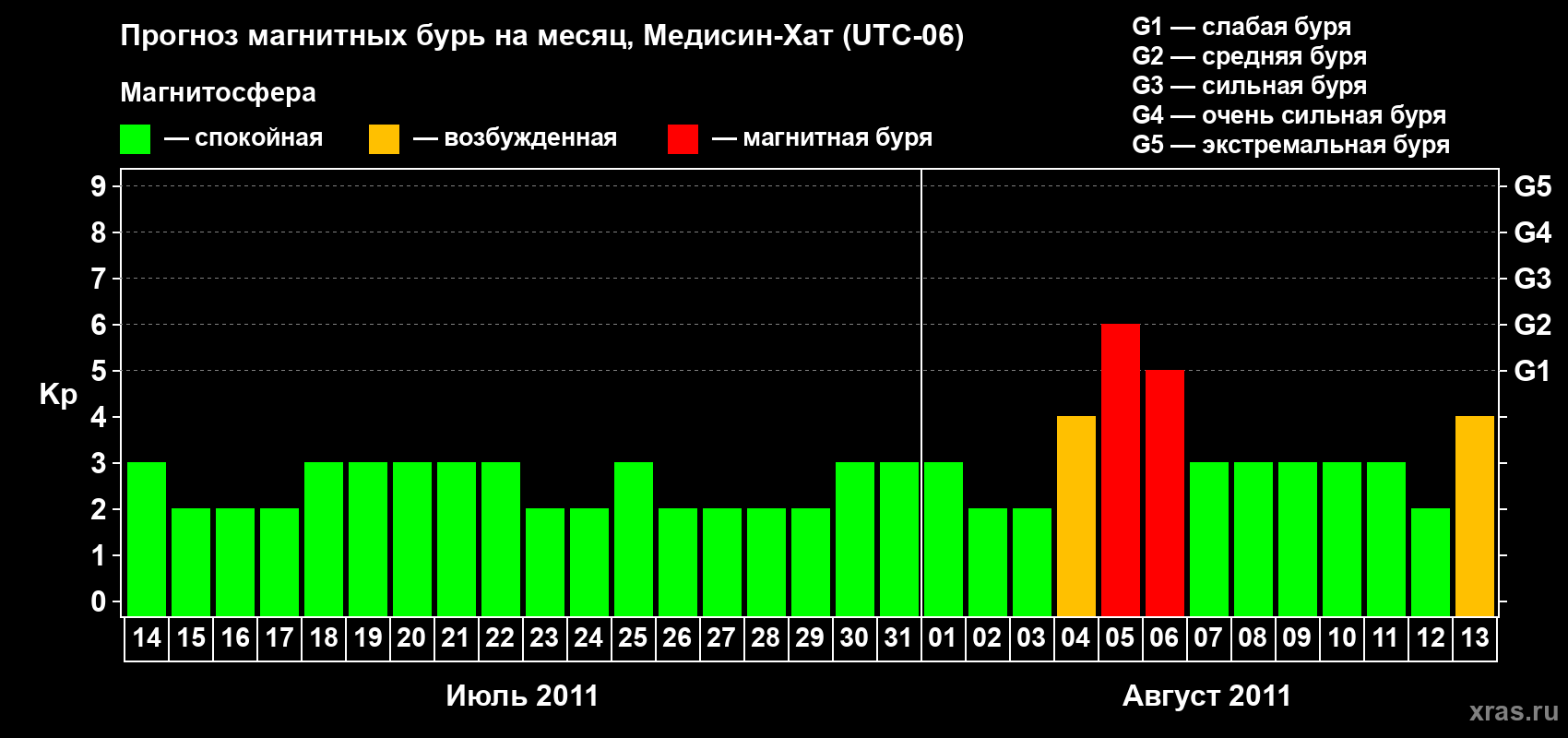 Прогноз магнитных бурь в Медисин-Хате — 14 июля 2011 года