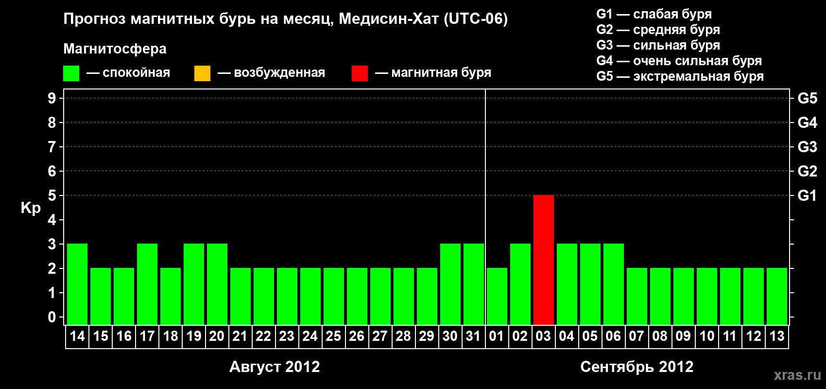 Прогноз магнитных бурь в Медисин-Хате — 14 августа 2012 года