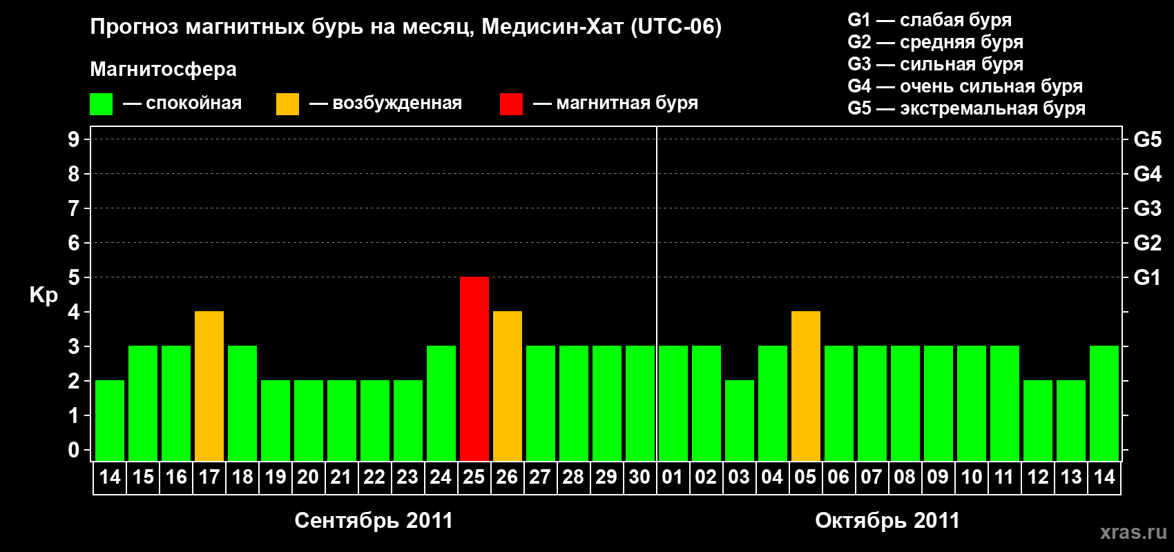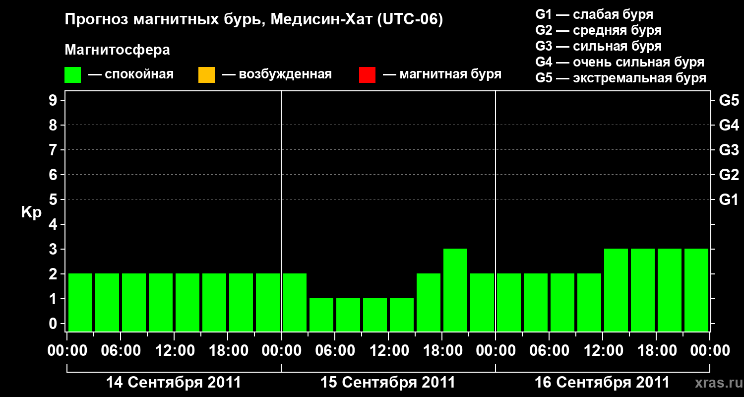 Прогноз магнитных бурь в Медисин-Хате — 14 сентября 2011 года