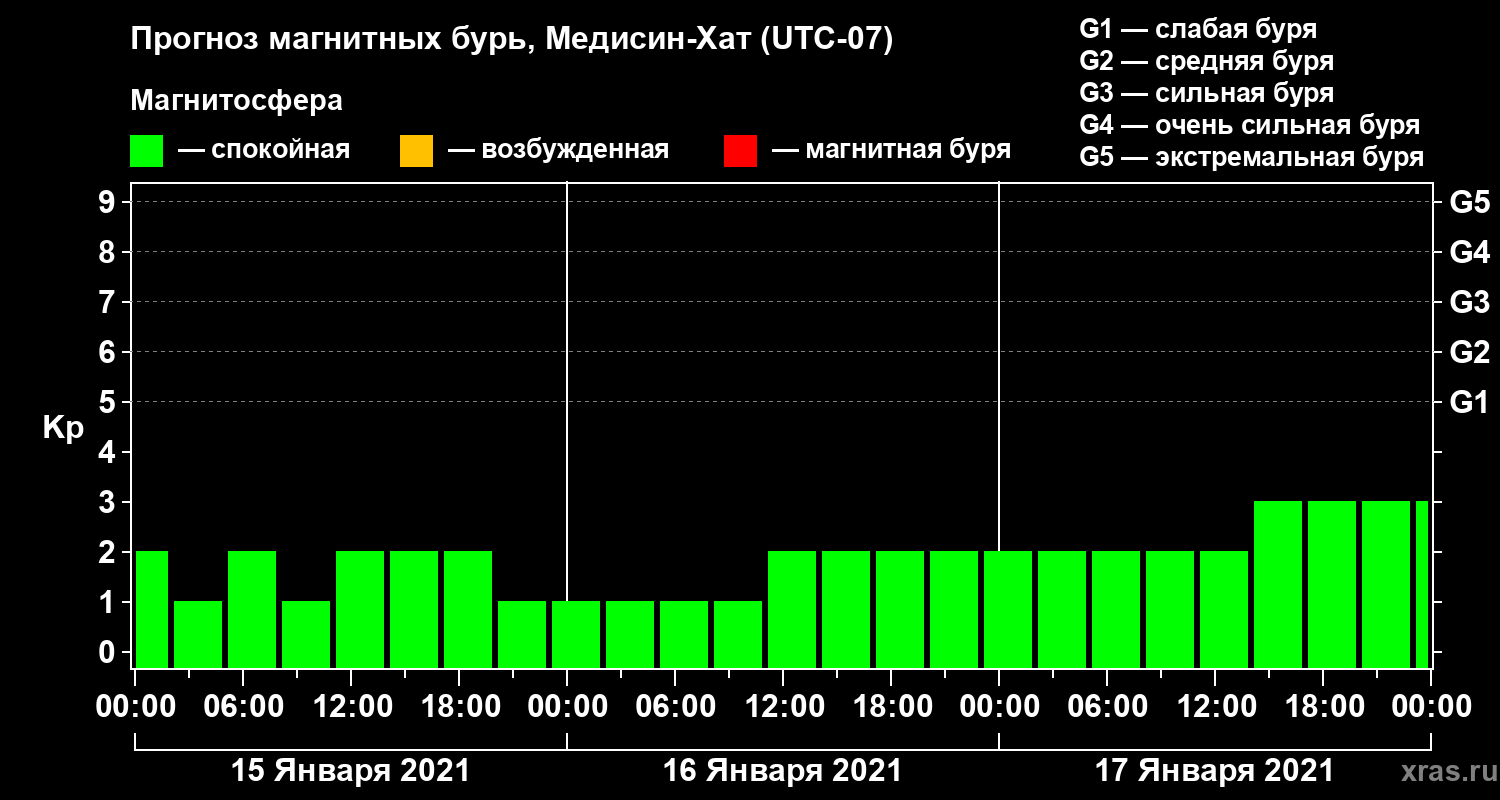 Прогноз магнитных бурь в Медисин-Хате — 15 января 2021 года