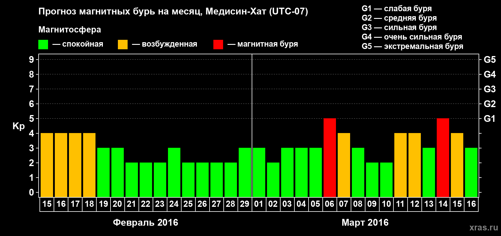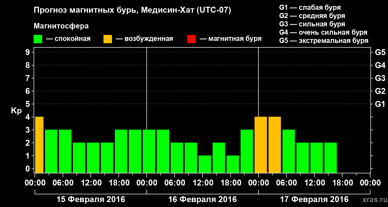 Прогноз магнитных бурь в Медисин-Хате — 15 февраля 2016 года