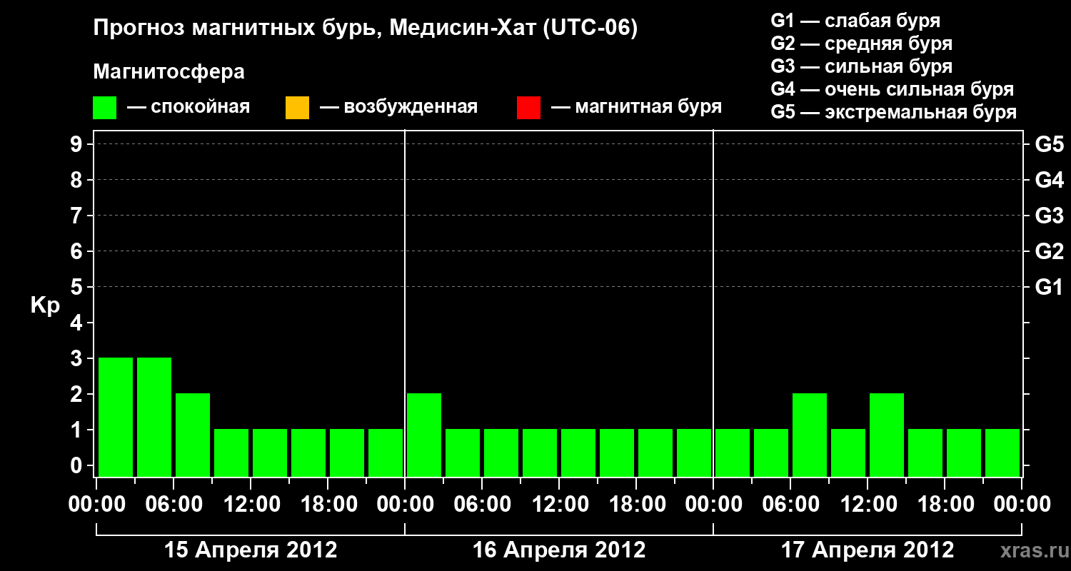 Прогноз магнитных бурь в Медисин-Хате на 15 апреля 2012 года