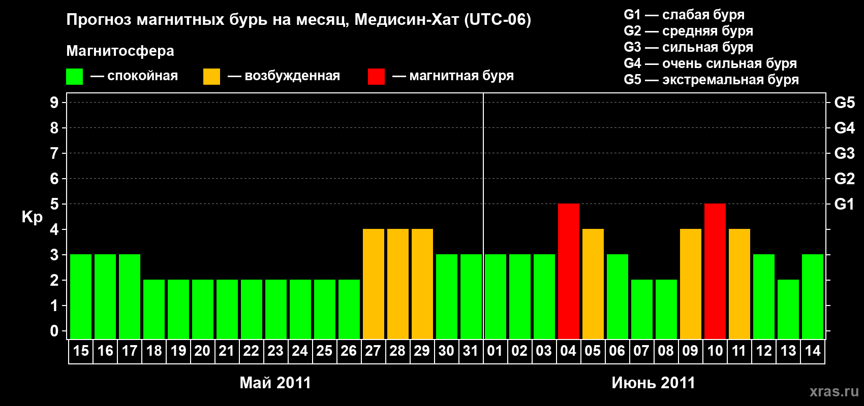 Прогноз магнитных бурь в Медисин-Хате — 15 мая 2011 года