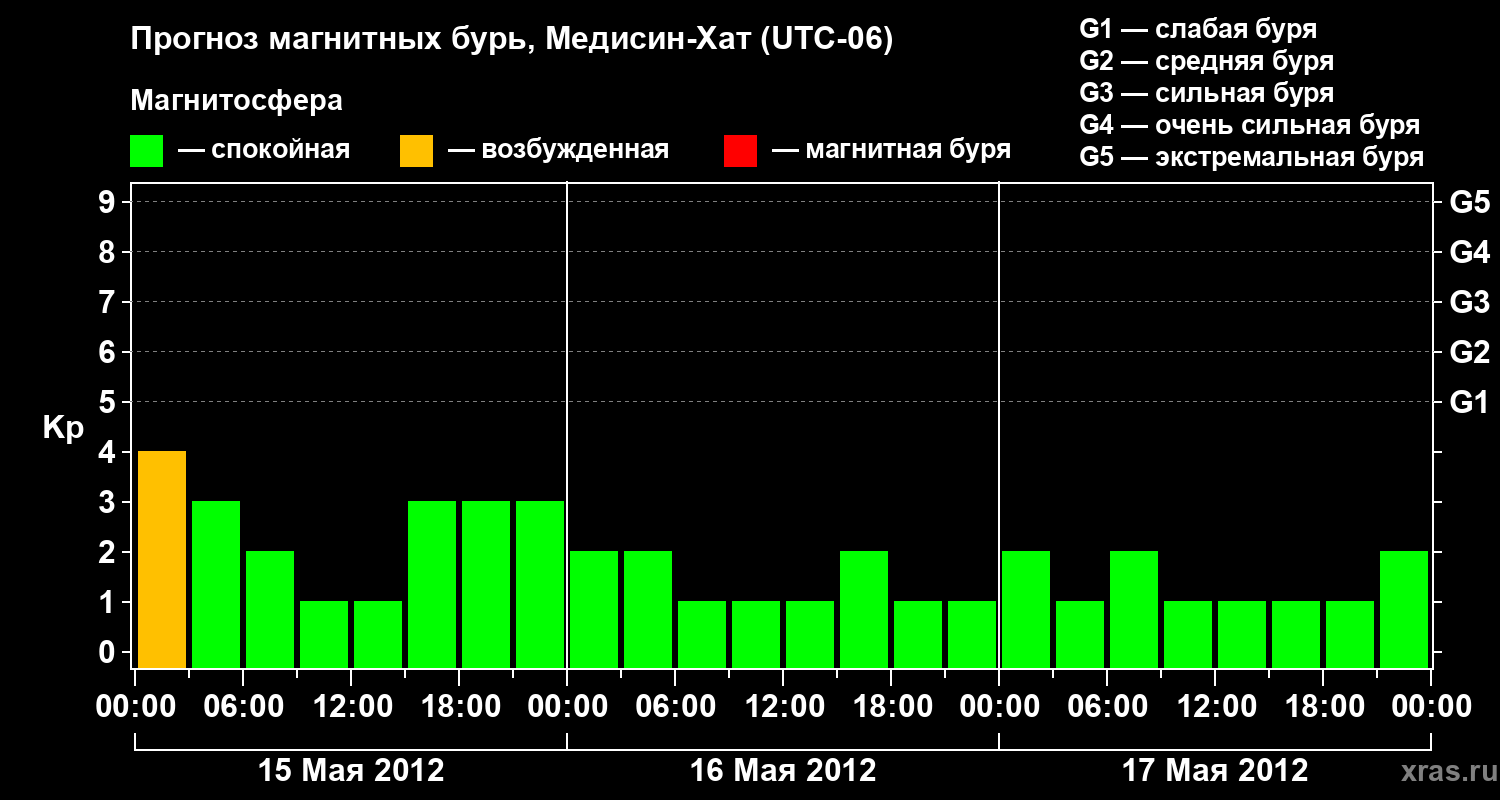 Прогноз магнитных бурь в Медисин-Хате — 15 мая 2012 года