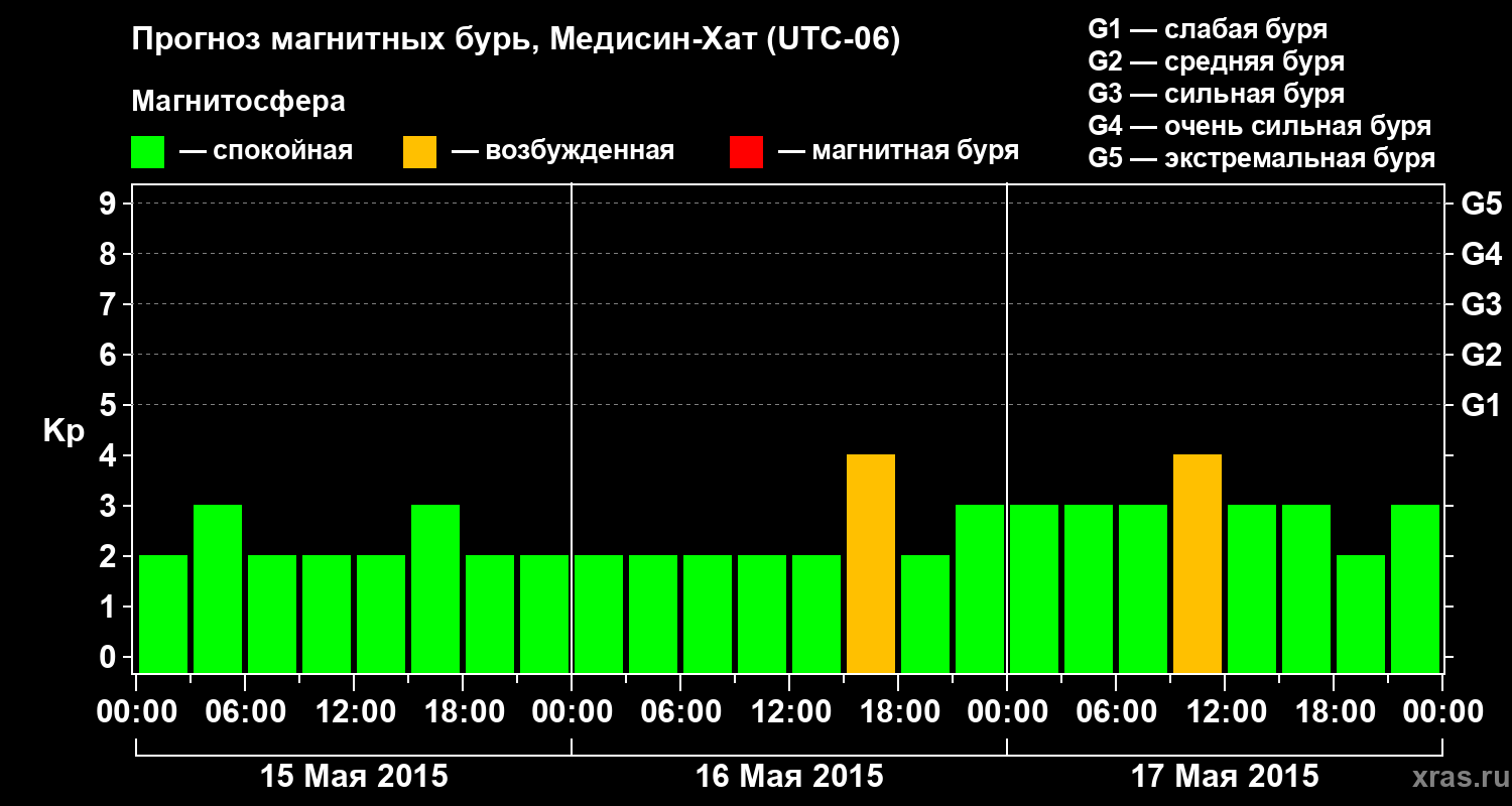 Прогноз магнитных бурь в Медисин-Хате — 15 мая 2015 года