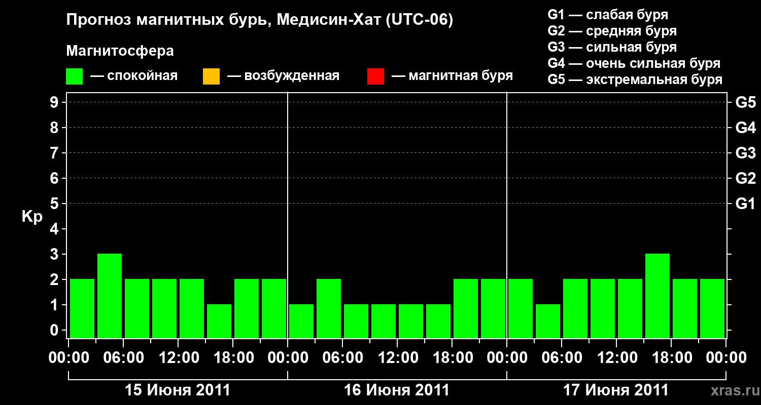 Прогноз магнитных бурь в Медисин-Хате — 15 июня 2011 года