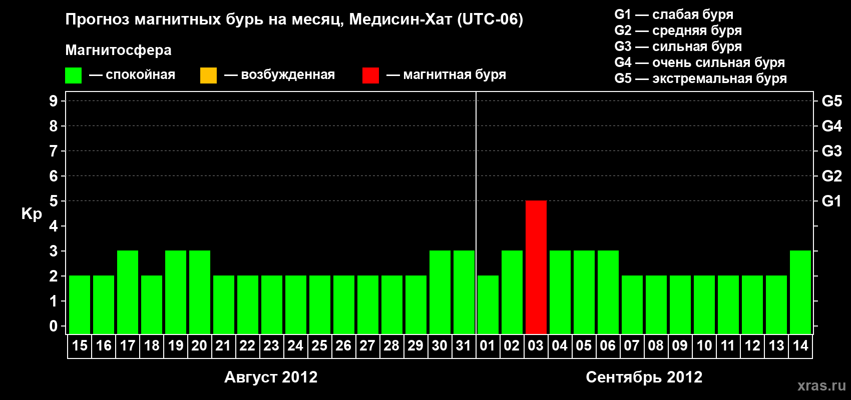 Прогноз магнитных бурь в Медисин-Хате — 15 августа 2012 года