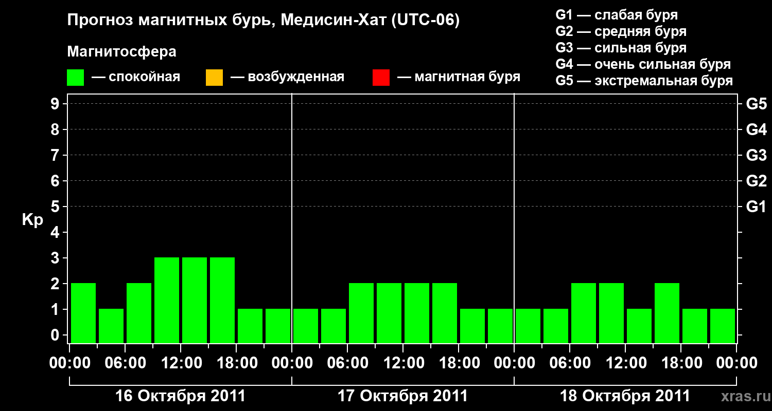 Прогноз магнитных бурь в Медисин-Хате — 16 октября 2011 года