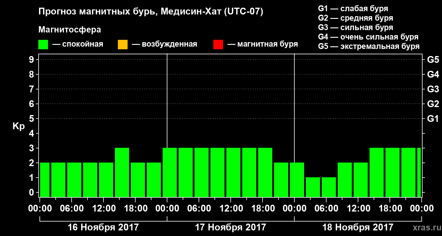 Прогноз магнитных бурь в Медисин-Хате — 16 ноября 2017 года