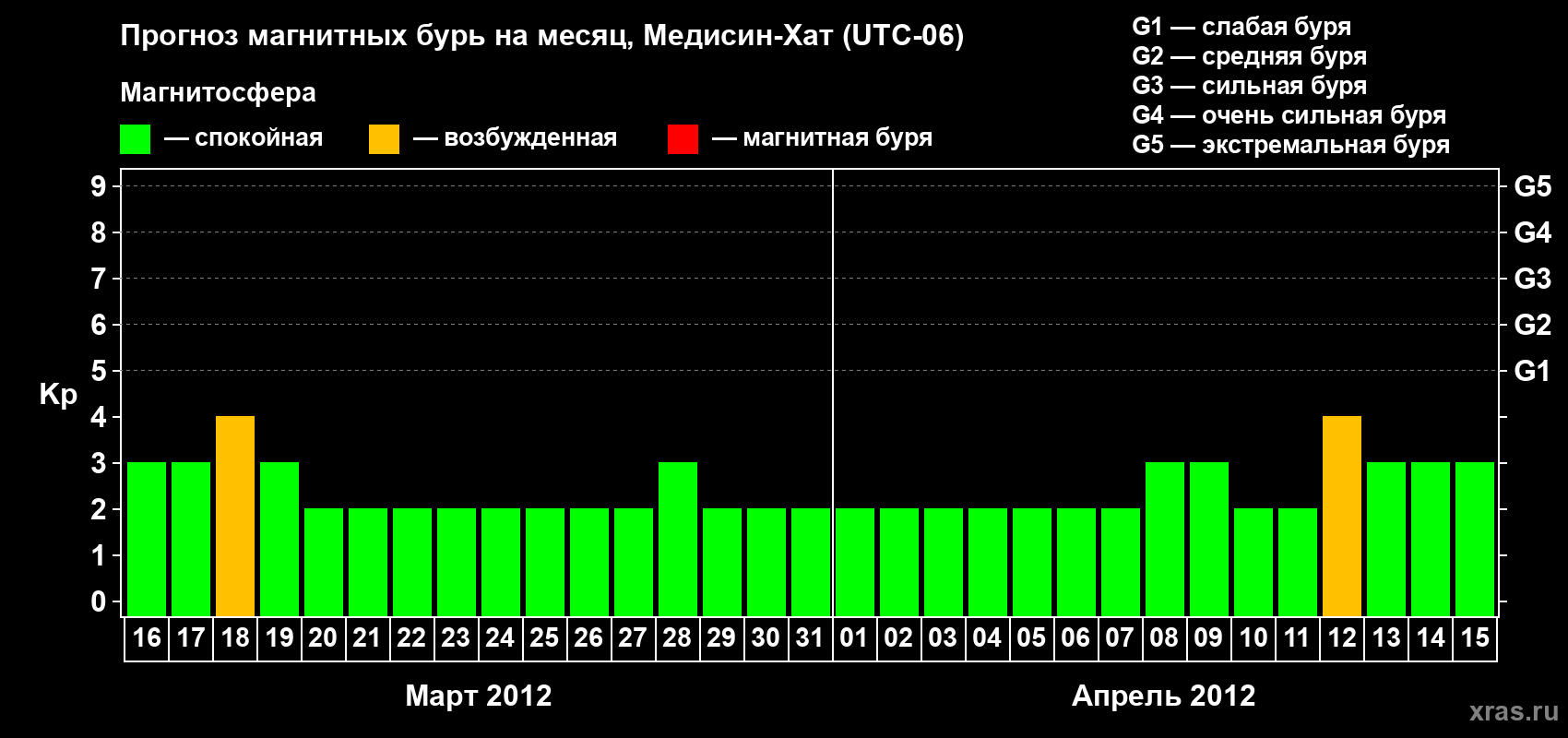 Прогноз магнитных бурь в Медисин-Хате — 16 марта 2012 года