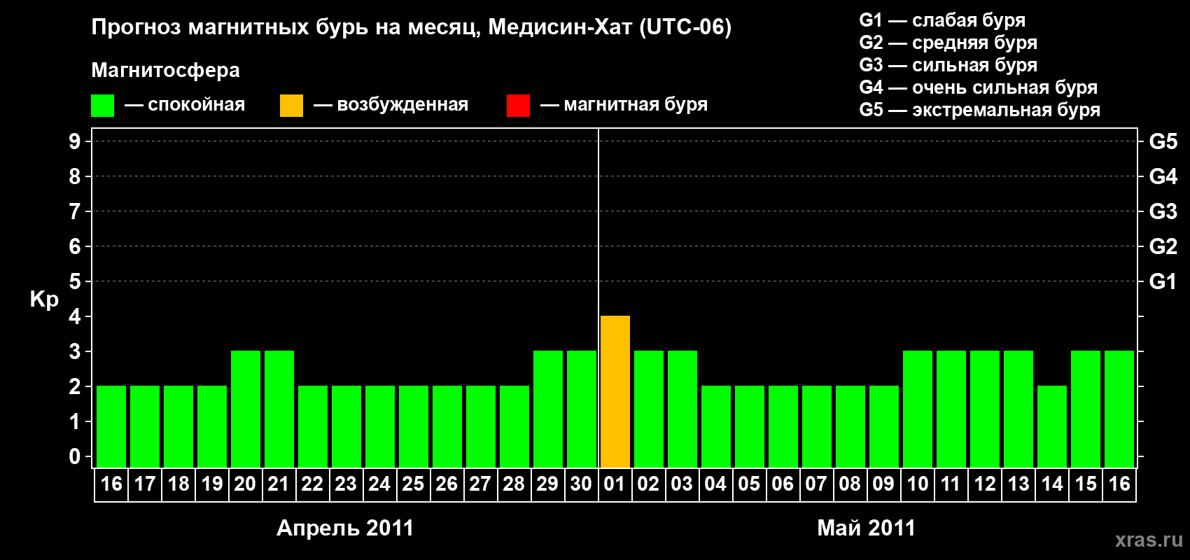 Прогноз магнитных бурь в Медисин-Хате — 16 апреля 2011 года