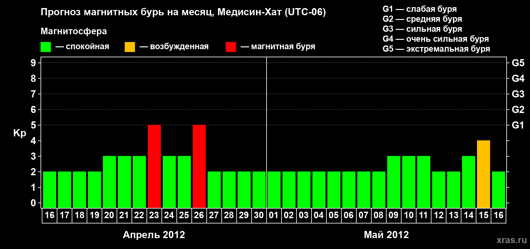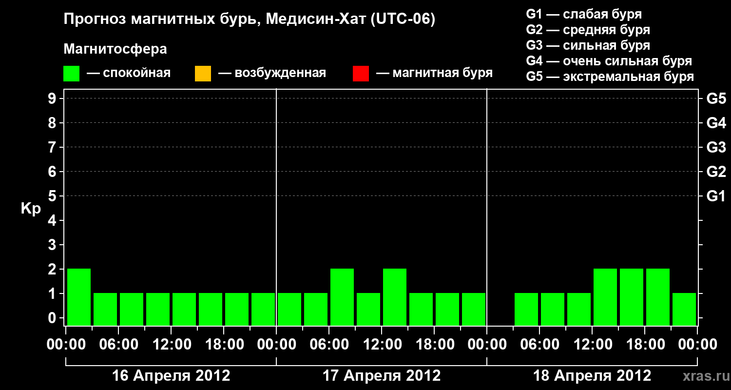 Прогноз магнитных бурь в Медисин-Хате — 16 апреля 2012 года