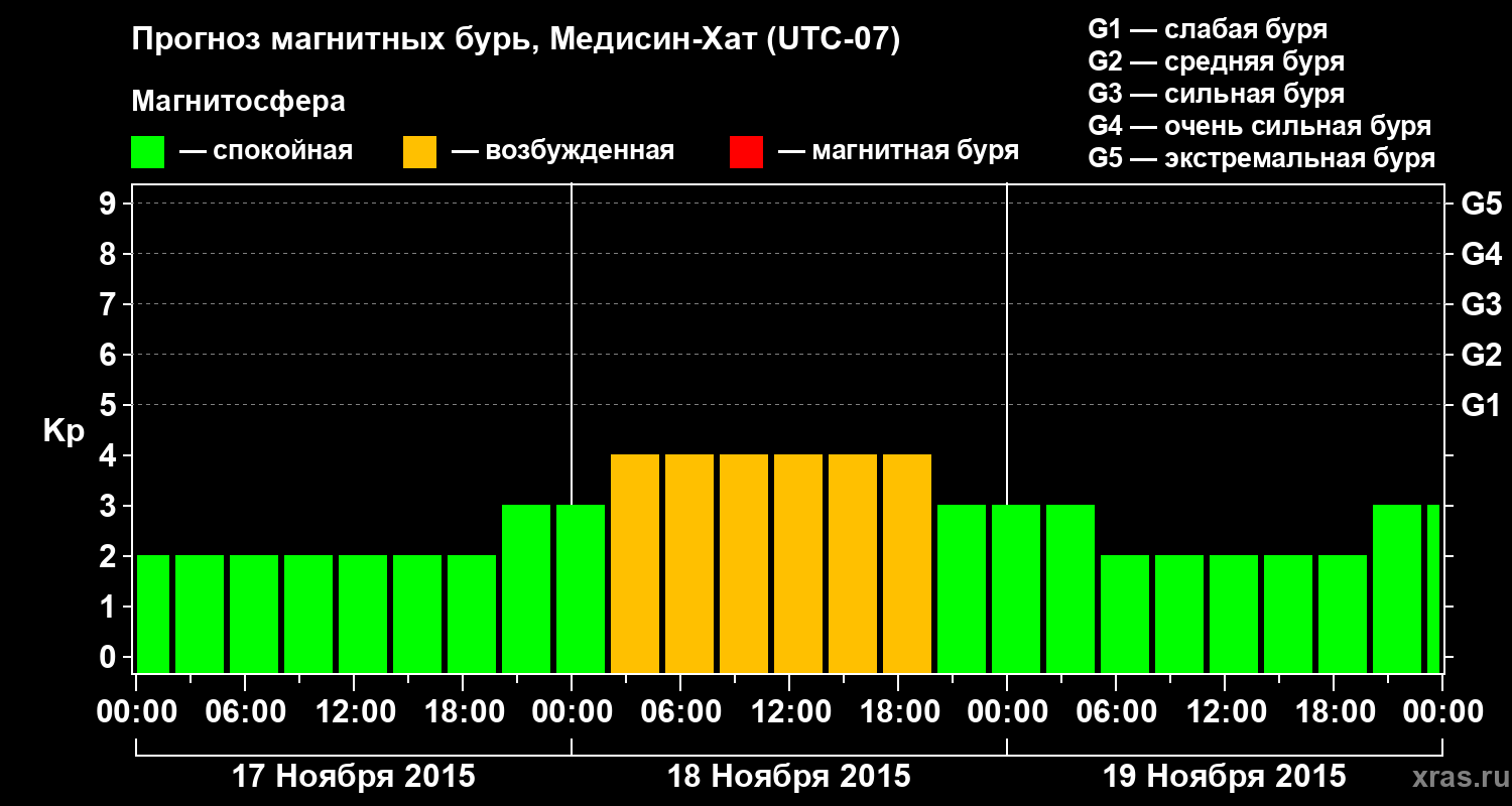 Прогноз магнитных бурь в Медисин-Хате — 17 ноября 2015 года