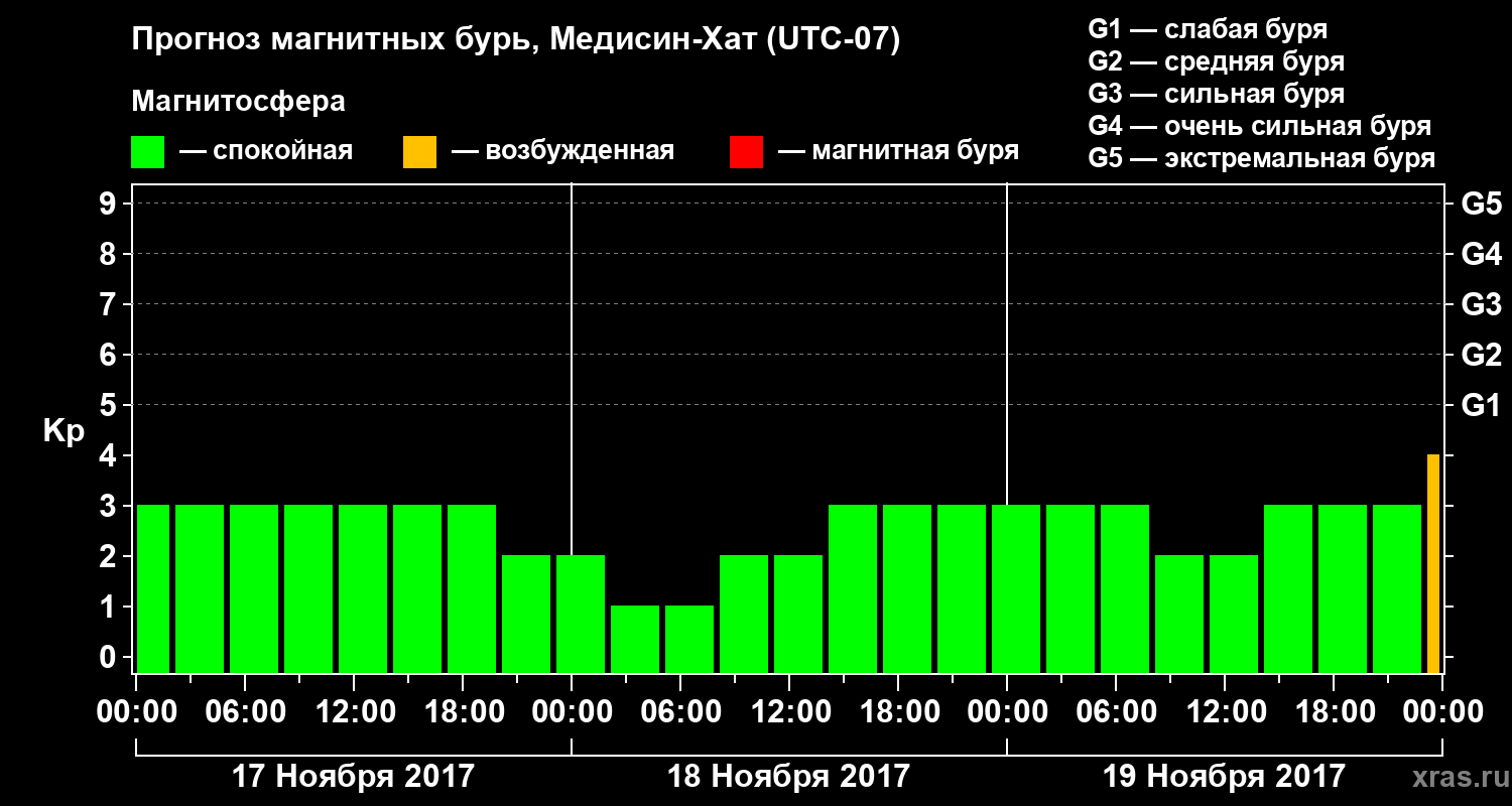 Прогноз магнитных бурь в Медисин-Хате — 17 ноября 2017 года