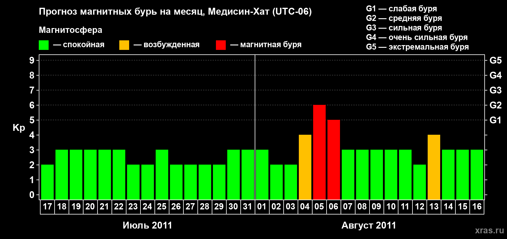Прогноз магнитных бурь в Медисин-Хате — 17 июля 2011 года