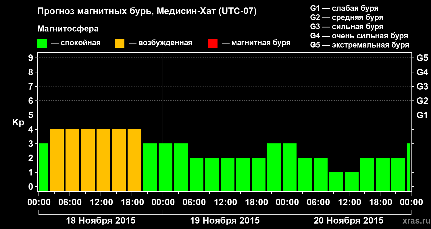 Прогноз магнитных бурь в Медисин-Хате — 18 ноября 2015 года