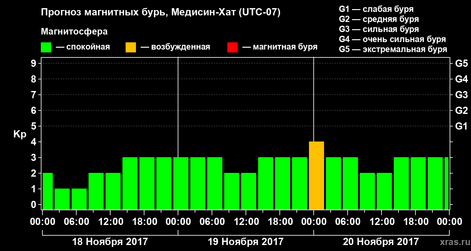 Прогноз магнитных бурь в Медисин-Хате — 18 ноября 2017 года