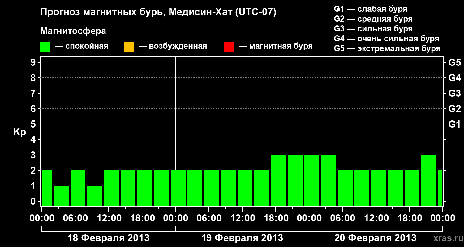 Прогноз магнитных бурь в Медисин-Хате — 18 февраля 2013 года