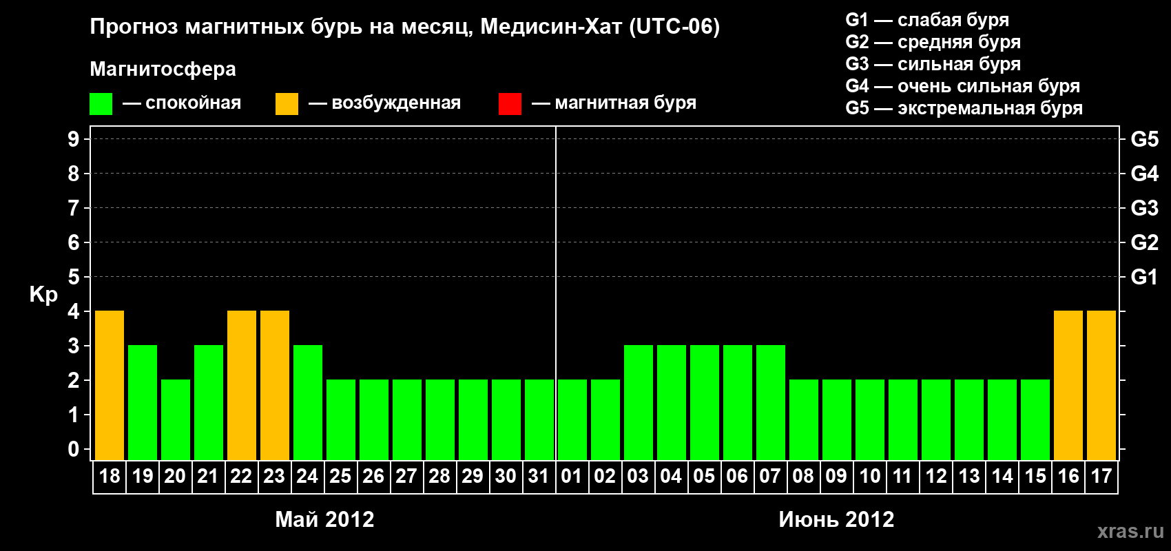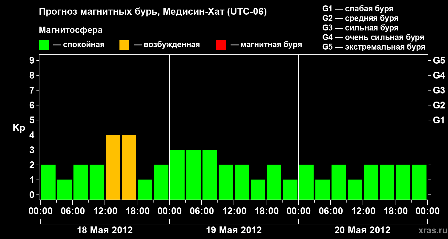 Прогноз магнитных бурь в Медисин-Хате — 18 мая 2012 года