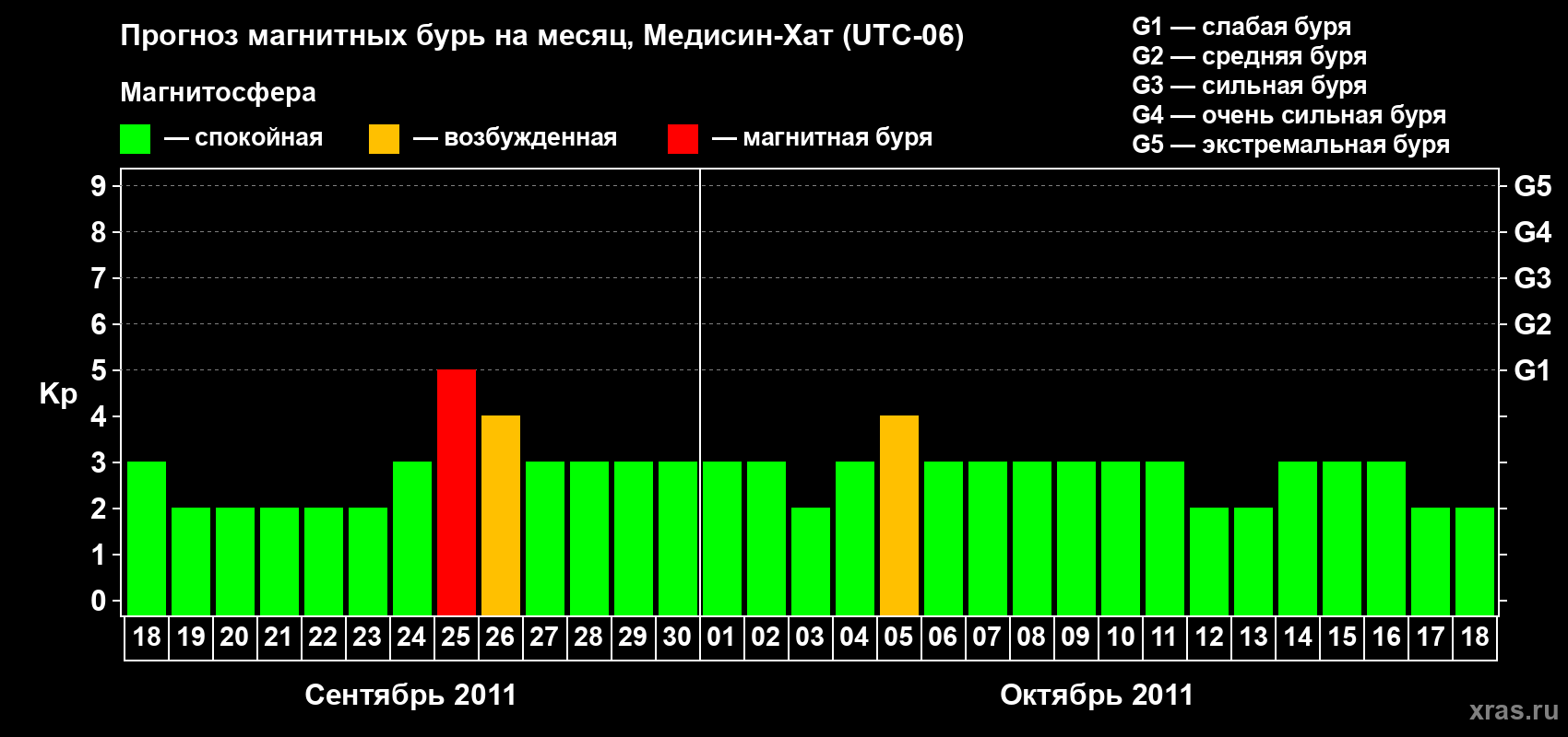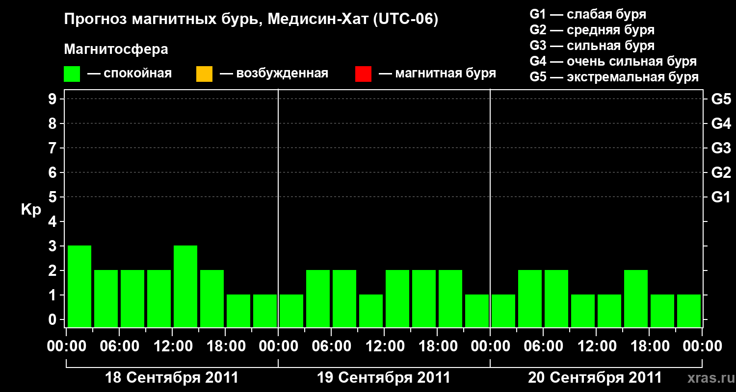 Прогноз магнитных бурь в Медисин-Хате — 18 сентября 2011 года