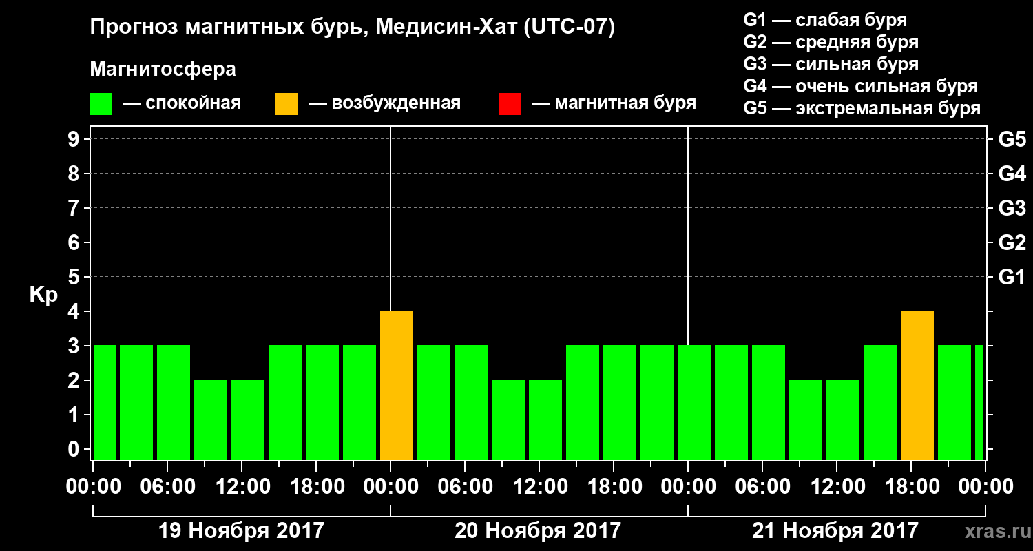 Прогноз магнитных бурь в Медисин-Хате — 19 ноября 2017 года