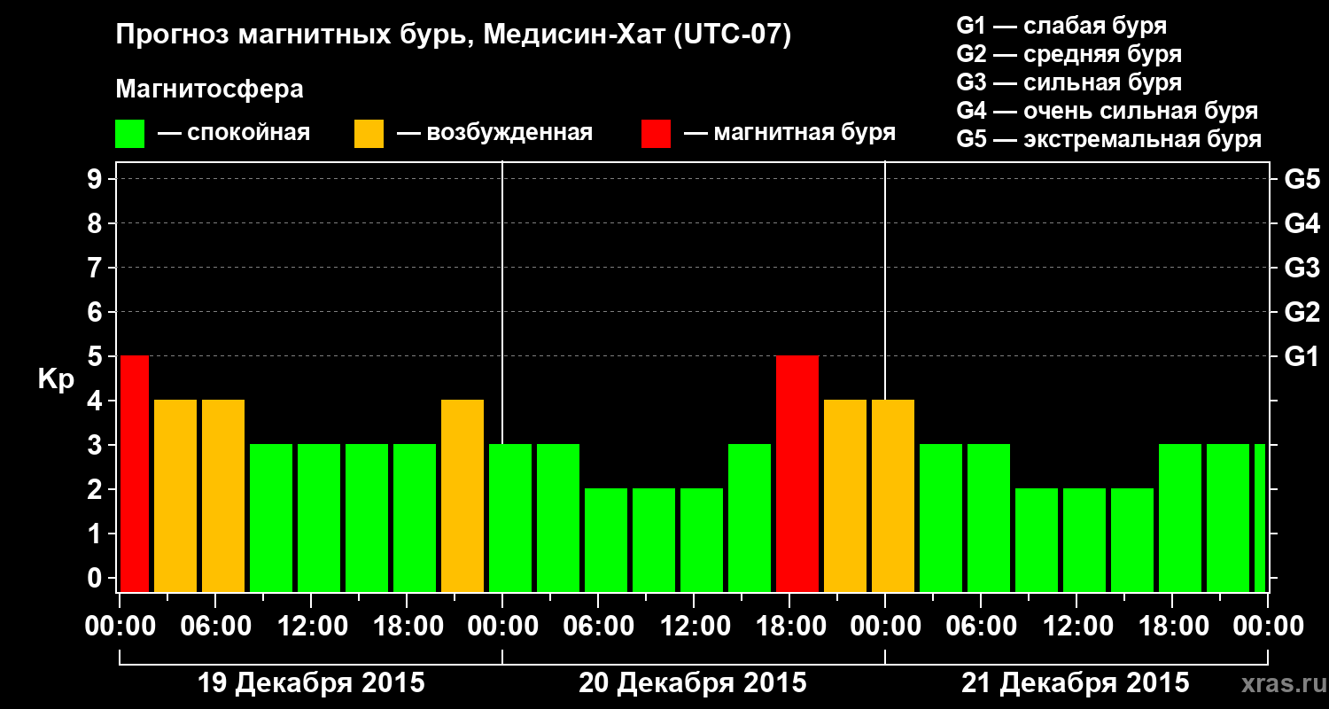 Прогноз магнитных бурь в Медисин-Хате — 19 декабря 2015 года
