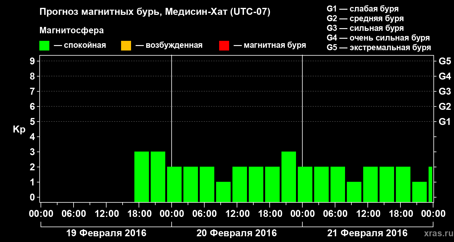 Прогноз магнитных бурь в Медисин-Хате — 19 февраля 2016 года