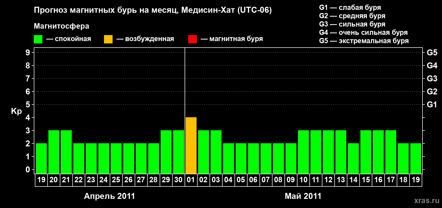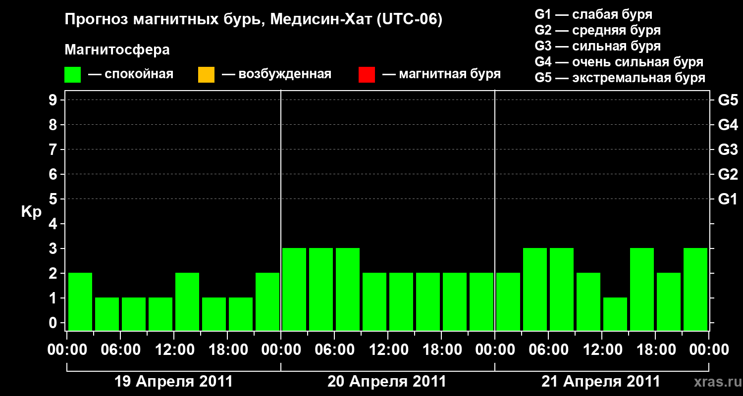 Прогноз магнитных бурь в Медисин-Хате — 19 апреля 2011 года