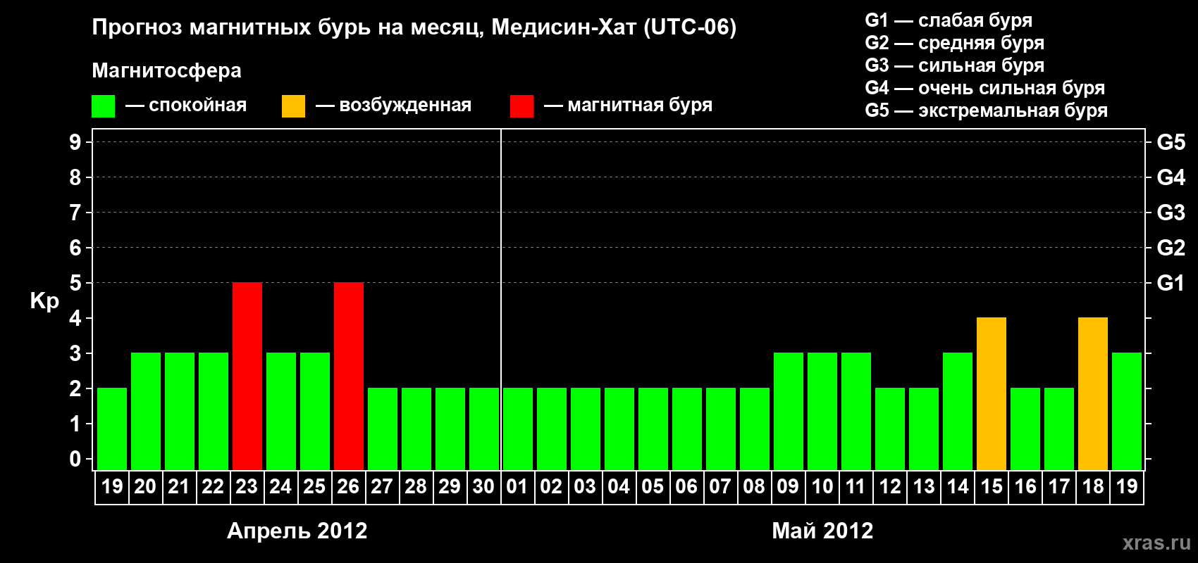 Прогноз магнитных бурь в Медисин-Хате — 19 апреля 2012 года