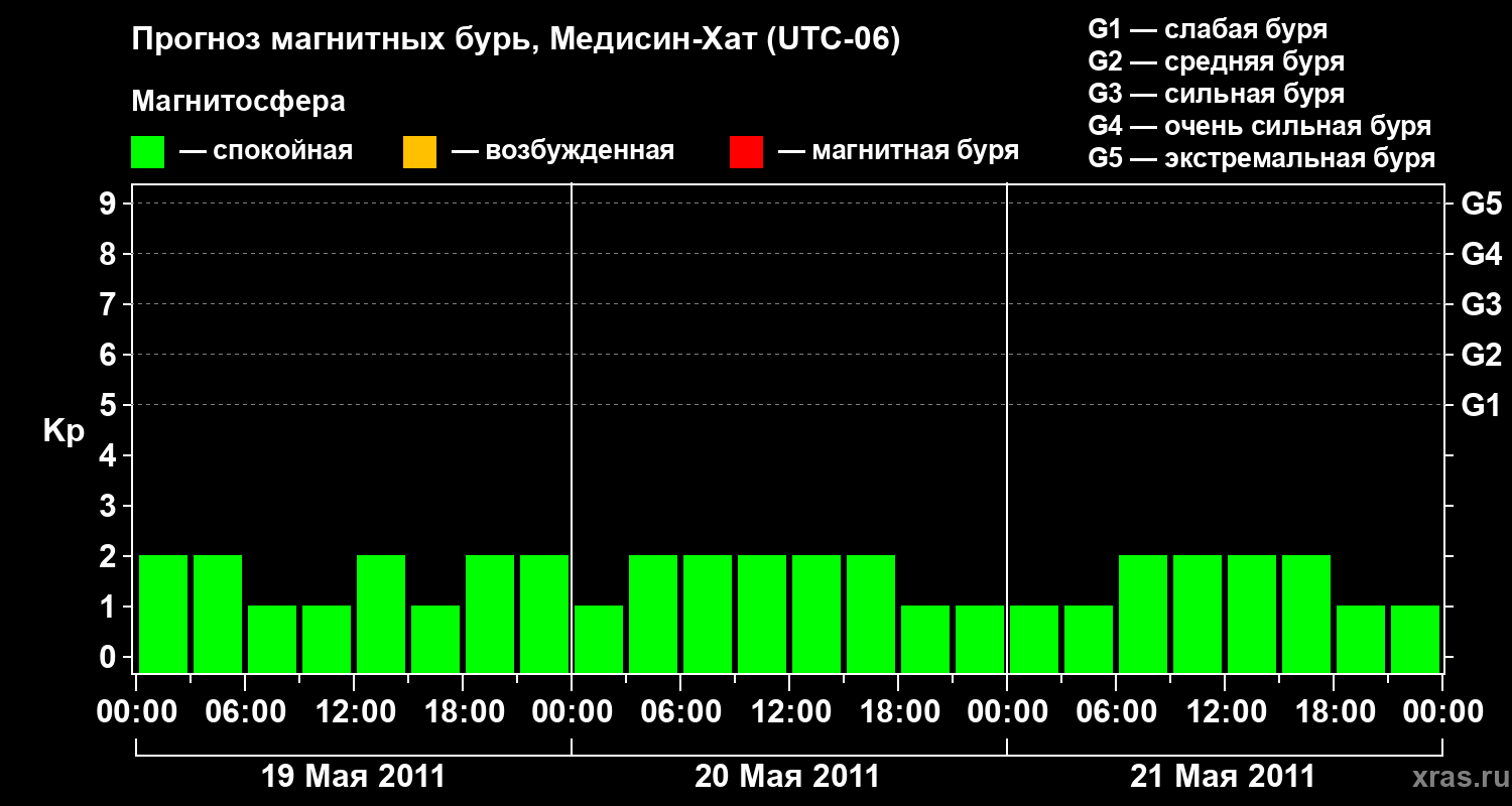 Прогноз магнитных бурь в Медисин-Хате — 19 мая 2011 года
