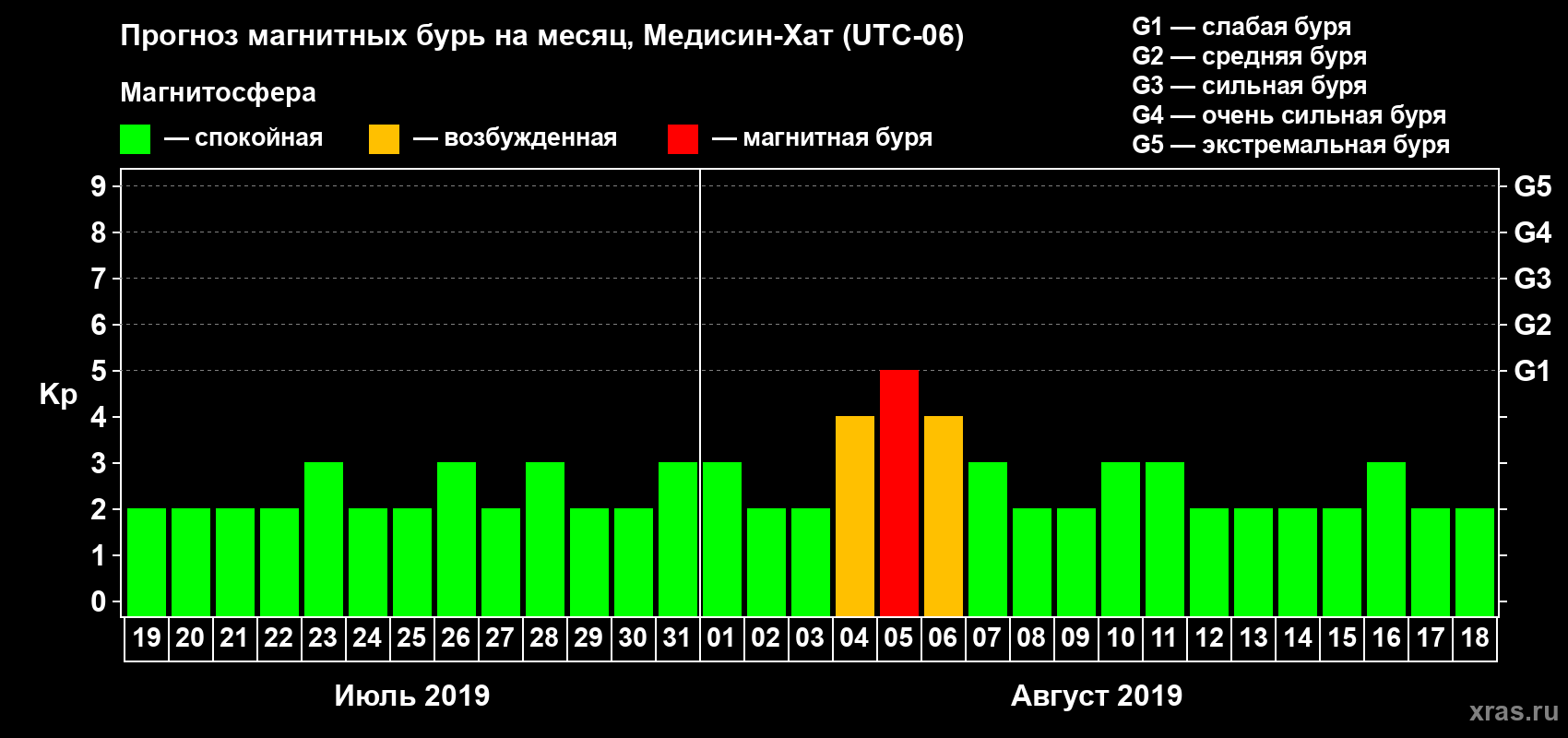 Прогноз магнитных бурь в Медисин-Хате — 19 июля 2019 года