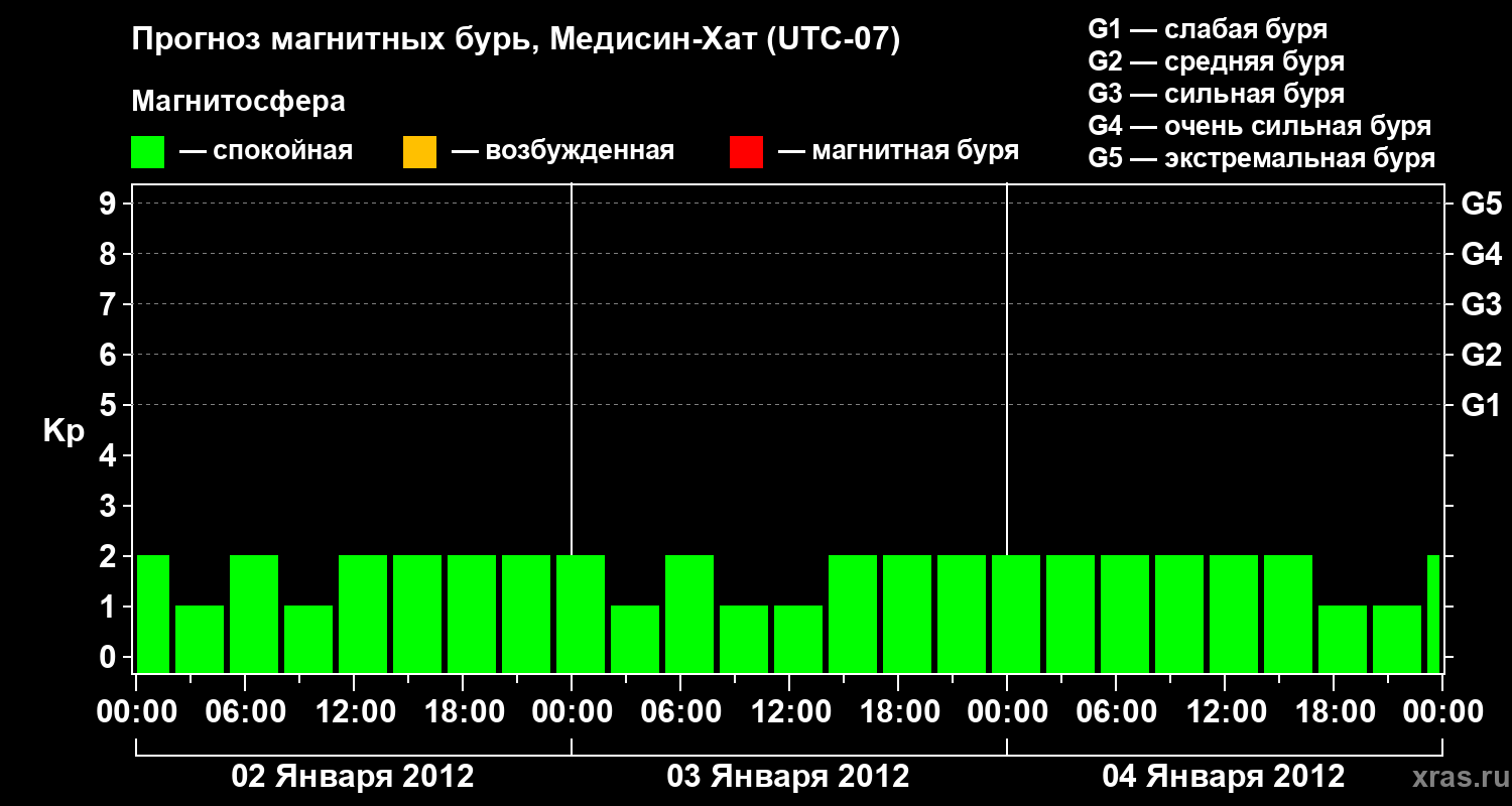Прогноз магнитных бурь в Медисин-Хате — 2 января 2012 года