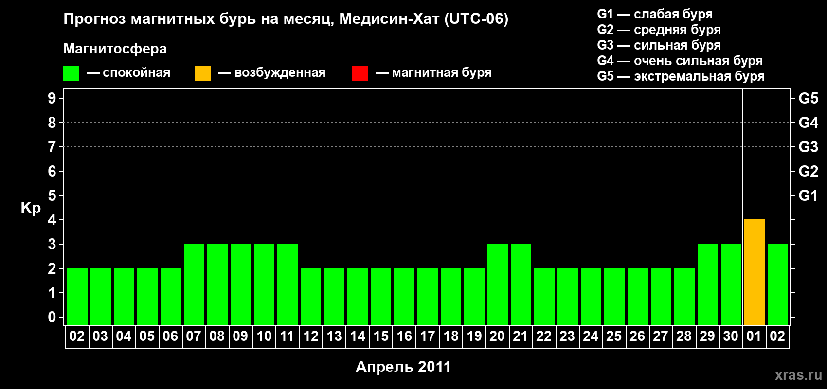 Прогноз магнитных бурь в Медисин-Хате — 2 апреля 2011 года