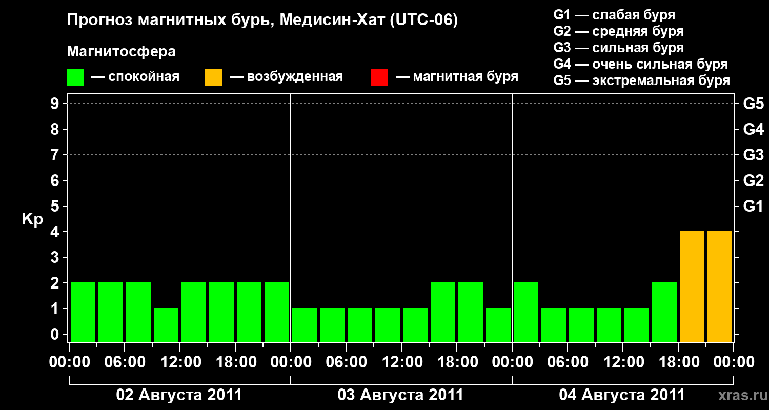 Прогноз магнитных бурь в Медисин-Хате — 2 августа 2011 года