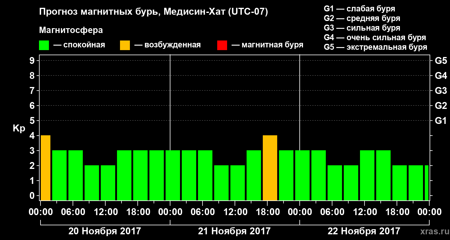 Прогноз магнитных бурь в Медисин-Хате — 20 ноября 2017 года