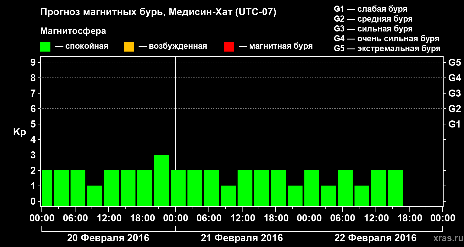 Прогноз магнитных бурь в Медисин-Хате — 20 февраля 2016 года