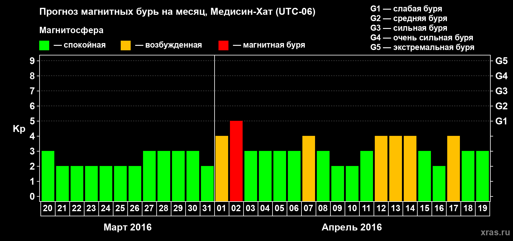 Прогноз магнитных бурь в Медисин-Хате — 20 марта 2016 года