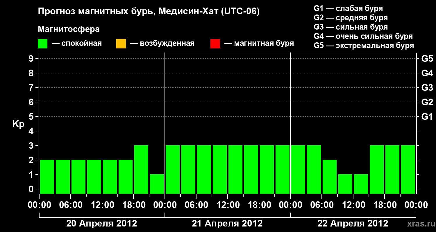 Прогноз магнитных бурь в Медисин-Хате — 20 апреля 2012 года
