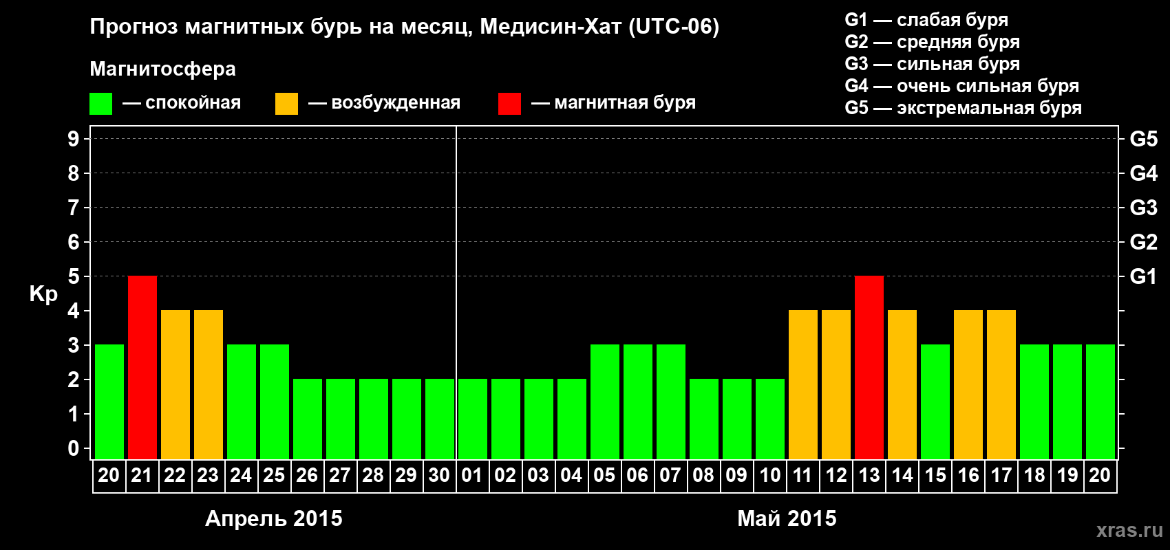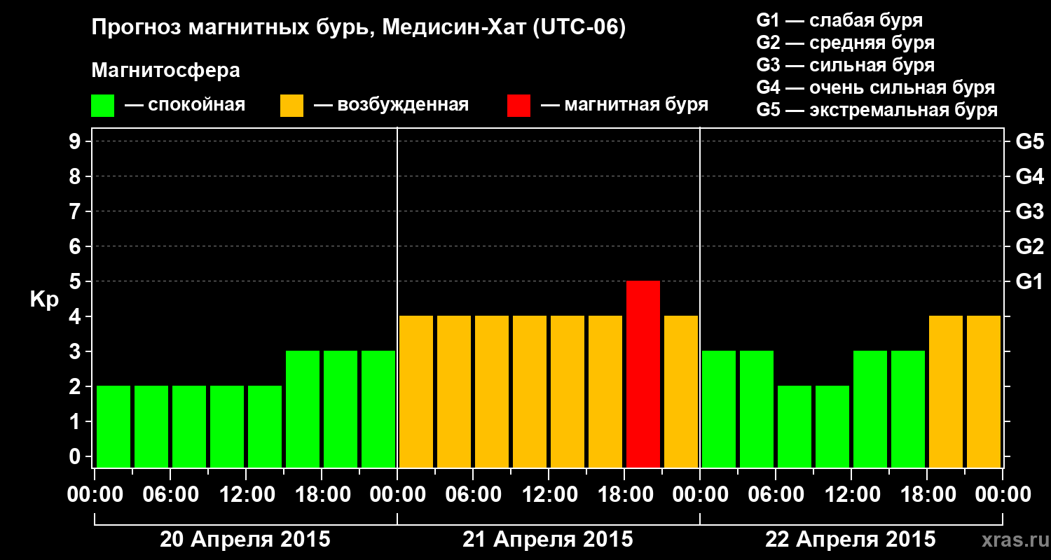 Прогноз магнитных бурь в Медисин-Хате — 20 апреля 2015 года